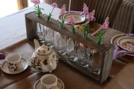 The first DIY project is a table centerpiece that would definitely compliment a big, rectangle raw-wood inspired country dining table. I make use of glass bottles and create holes in a wooden frame around the bottles. It is an easy DIY and the outcome is delightful!