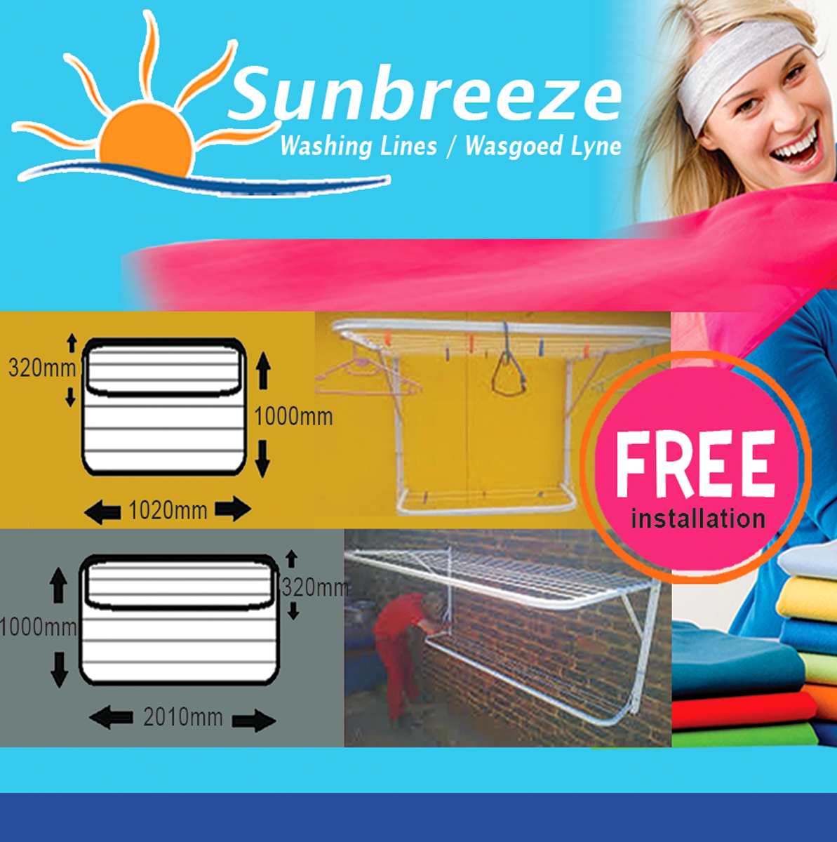 Sunbreeze Washing Lines are locally manufactured. We use 25mm x 1,6mm square tubing to manufacture the wall-mounted washing lines. The material is then prepared for powder coating, which means it is durable and strong. The washing lines are wall-mounted and can be neatly folded away when not in use. The washing lines are manufactured in five different sizes and use two 1-meter washing lines for smaller spaces and two 2-meter washing lines for bigger spaces.